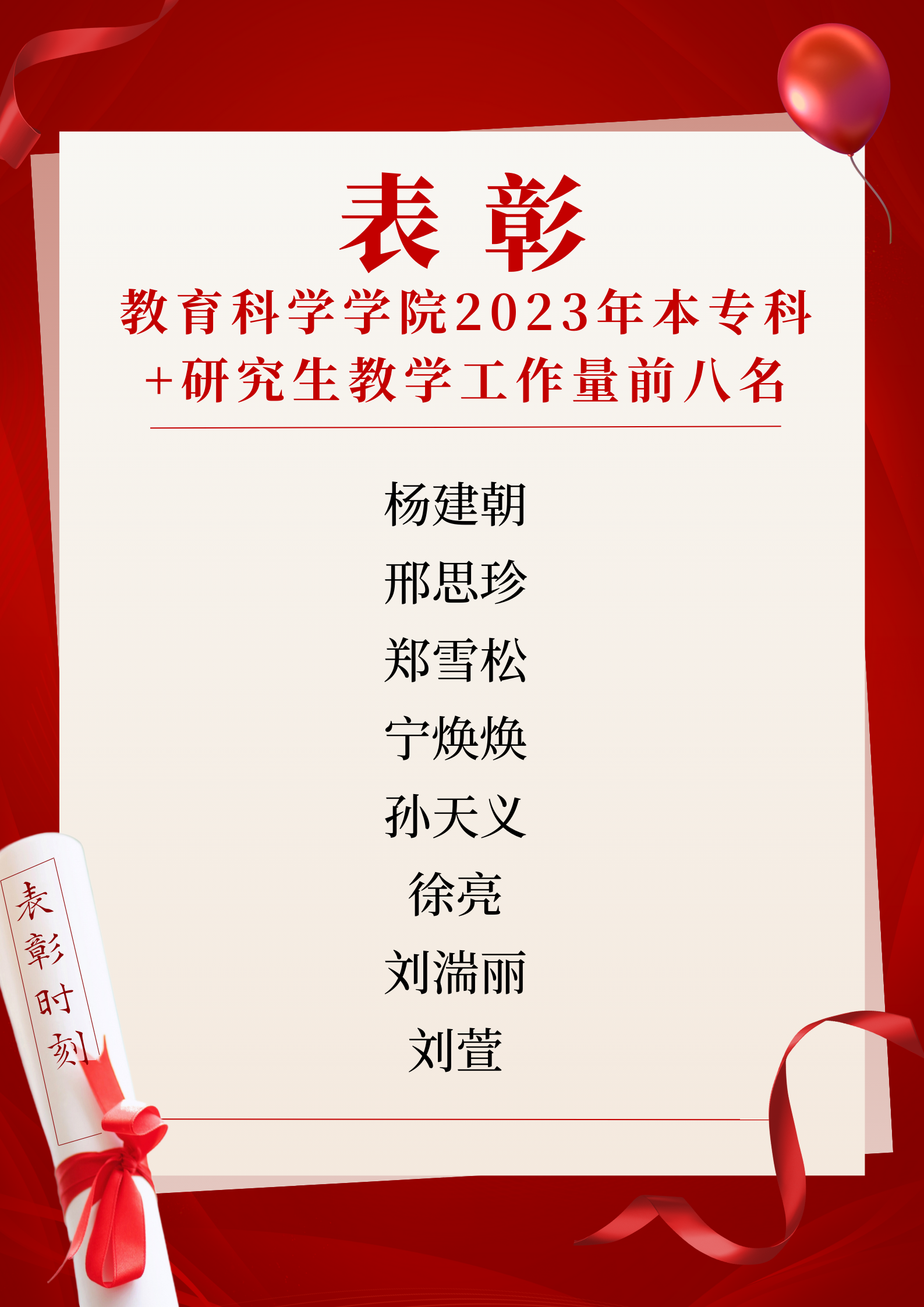 【表彰】澳门正规电子游戏平台2023年本专科+研究生教学工作量前八名