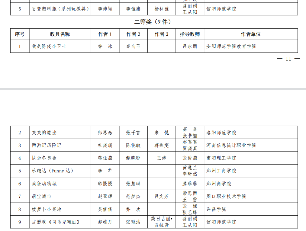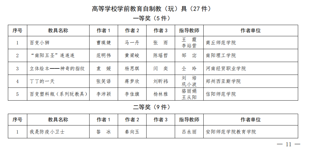 时间:2022-09-28 17:39:24 来源: 作者: 阅读: 次近日,河南省教育厅公布了第十九届河南省中小学幼儿园自制教(玩)具暨学生科技创新小制作小发明评选活动获奖名单,电子游戏官网首次参赛的2件作品均获佳绩。其中,2020级学前教育本科2班李沛颖、李佳旗、杨林雅的作品《百变塑料瓶(系列玩教具)》(指导教师:骆丽娟、王从阳)获高等学校学前教育自制教(玩)具组一等奖,2020级学前教育本科1班赵越月、张琳洁、美日古丽•吾拉音的作品《皮影戏<司马光砸缸>》(指导教师:骆丽娟、王从阳)获二等奖。