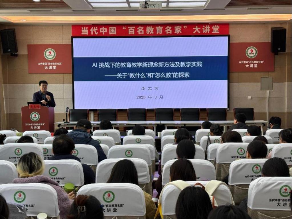 会上,李志河教授以“教育中的老问题与新问题”为切入点,从重新审视教育目标、回归学习本质、构建问题逻辑思维模型、实践以认知为目标的5E教学新范式、建设人工智能课程及分析其存在问题等五个角度展开报告。对于AI背景下的教学问题,李教授提出“教什么”:在认知层面,要传授“从第一性原理出发探索和发现”的问题逻辑认知模式,以及人类与AI共存世界的运行规律;在能力层面,要培养学生与AI协同探索未知和创新的意识与能力。同时,他从建课和教学两个阶段回答“怎么教”:建课时,教师如编剧,依5E步骤将能力和知识融入课程;教学时,学生是主演,AI是伙伴,教师为导演。最后,李教授以“道法术器”四字总结教育教学。报告结束后,与会教师就教学实践中的问题进行深入提问,会议现场气氛热烈。
