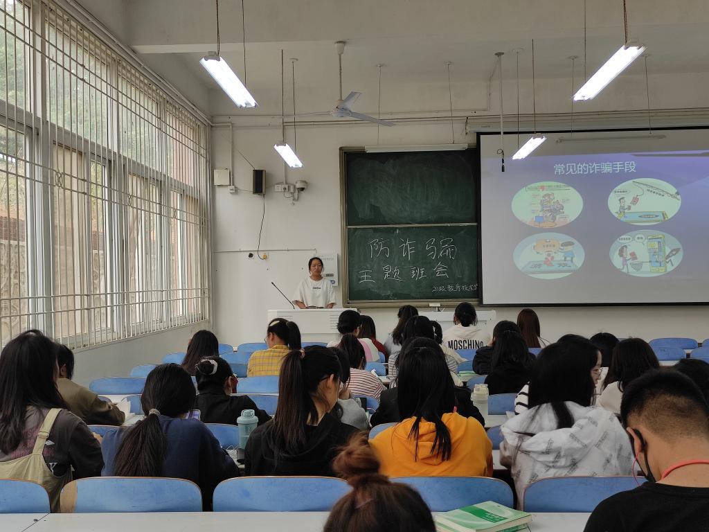 时间:2021-05-12 07:55:31 来源: 作者:朱方 阅读: 次为进一步提高同学们的安全防范意识,增强自我人身财产保护能力,谨防遭遇网络电信诈骗,电子游戏官网各班自4月27日至5月11陆续召开防诈骗主题班会。