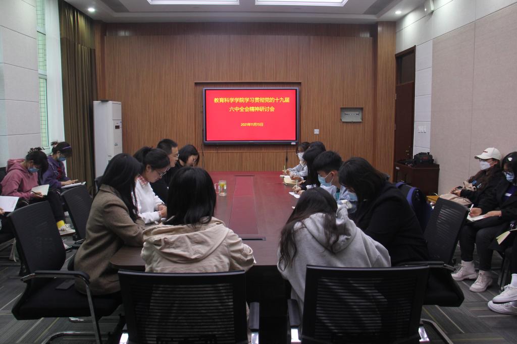 时间:2021-11-16 11:50:30 来源:教科院新闻部 作者:田园 周媛媛 阅读: 次11月15日,澳门正规电子游戏平台在教科楼303会议室召开学习贯彻党的十九届六中全会精神研讨会。院党委副书记董银银,辅导员牛洁楠、田园、吴康、张纪娥,院学生会主要学生干部、班长、团支书参加学习。学习研讨会由董银银主持。