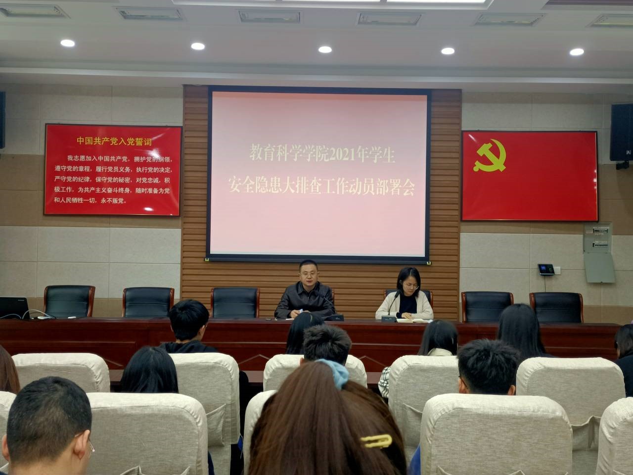 随后,学院对整项工作做出具体安排,开展自查工作。领导班子成员、辅导员等分别深入教室、学生宿舍等场所,对防火、用电及外宿等情况进行摸排,对存在的安全隐患进行了现场排查,叮嘱学生们遵守学校相关管理制度;各级各班组织主题班会、学习会等,深化思想认识,营造了重视安全防范的良好氛围。此次安全隐患排查工作进一步完善了相关制度,健全长效机制,从而加强学生安全教育,提高安全意识,为共创平安校园,校园平安奠定良好基础。