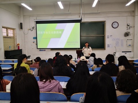 时间:2022-03-13 13:12:56 来源:教科院新闻部 作者:周媛媛 曹童然 亓亚兴 阅读: 次为进一步落实国家助学贷款还款工作,引导学生关注自身信用行为,提高个人诚信意识,3月9日,电子游戏官网资助专员朱方在教科楼108教室针对2022届有贷款的同学召开诚信还款专题宣讲会。