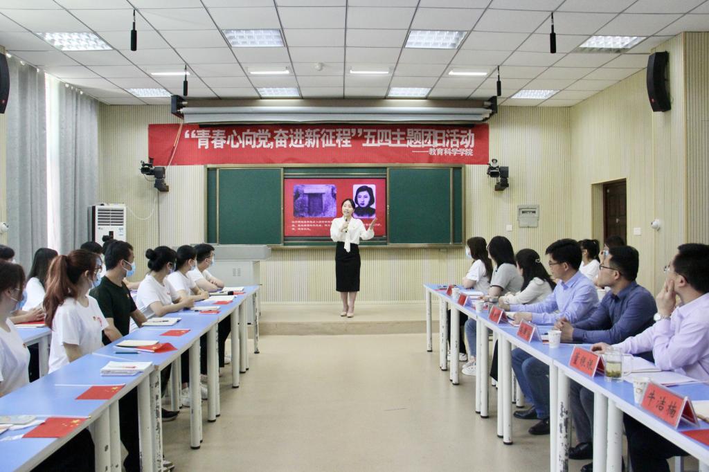 时间:2022-05-04 12:30:11 来源:教科院新闻部 作者:马玉娇 阅读: 次5月3日,澳门正规电子游戏平台“青春心向党 奋进新征程”五四主题团日活动在教科楼205教室举行。校党委宣传部副部长高国栋、校团委副书记常青,教科院党委书记房加帅、副书记董银银、分团委书记牛洁楠、辅导员杨艺卓及40余名青年团员现场参加活动,部分学生线上参加。活动由2020级心理学班团支部书记王琳主持。