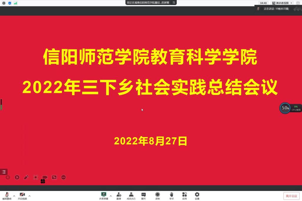 时间:2022-08-29 10:10:20 来源:教科院新闻部 作者:马玉娇 刘至涵 阅读: 次8月27日,澳门正规电子游戏平台召开线上2022年三下乡社会实践总结会议,院党委副书记董银银、分团委书记牛洁楠、主席团成员董欣瑶以及此次三下乡社会实践全体成员参加会议。会议由董欣瑶主持。