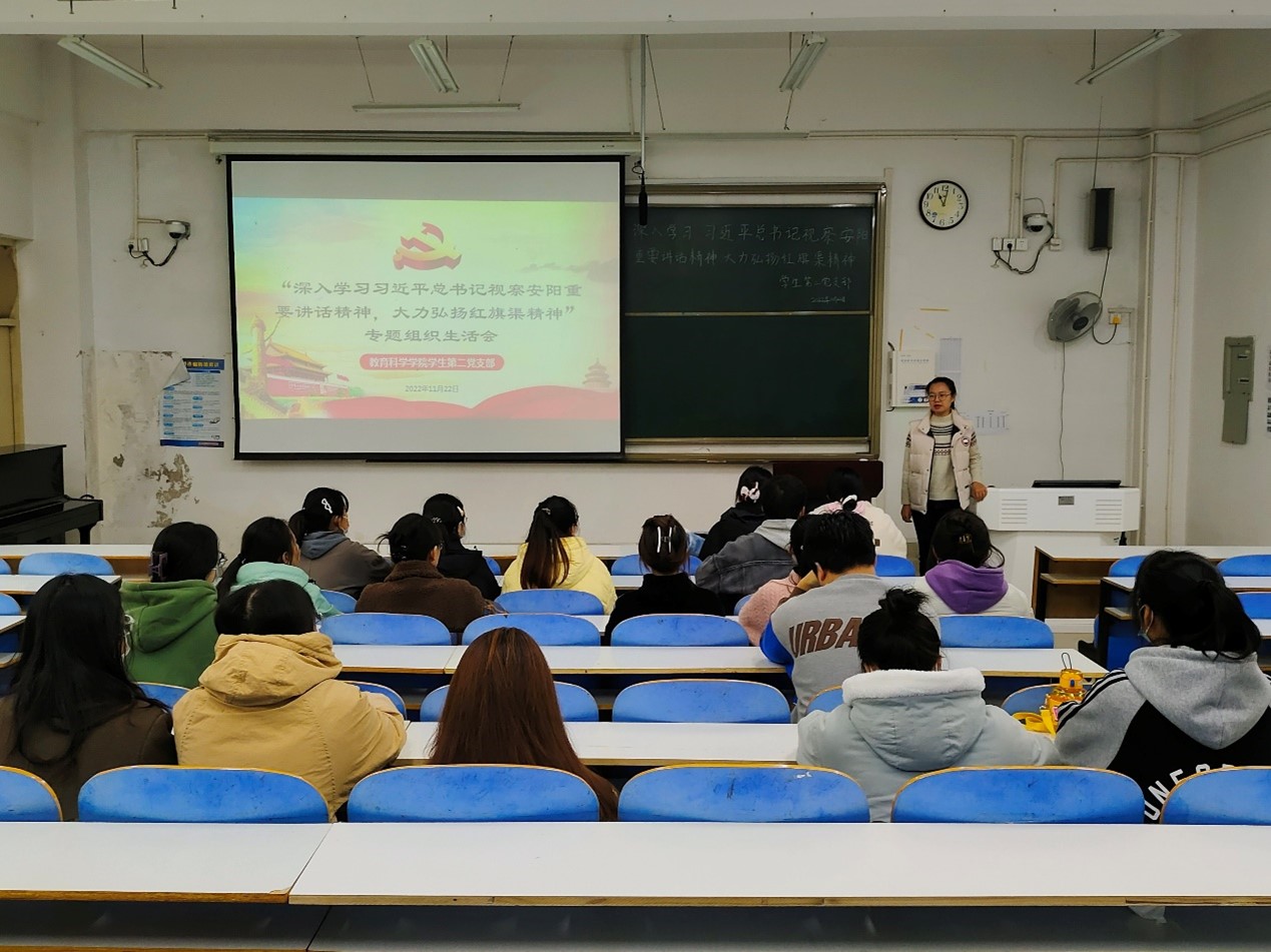 时间:2022-11-24 11:43:00 来源:教科院新闻部 作者:郭诗音 阅读: 次为深入学习贯彻党的二十大精神和习近平总书记视察河南安阳重要讲话精神,澳门正规电子游戏平台学生第二党支部于11月22日在教科楼203教室开展了“深入学习习近平总书记视察安阳重要讲话精神,大力弘扬红旗渠精神”专题组织生活会。学生第二党支部全体党员参加会议,会议由支部书记田园主持。