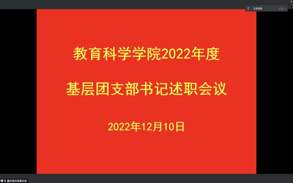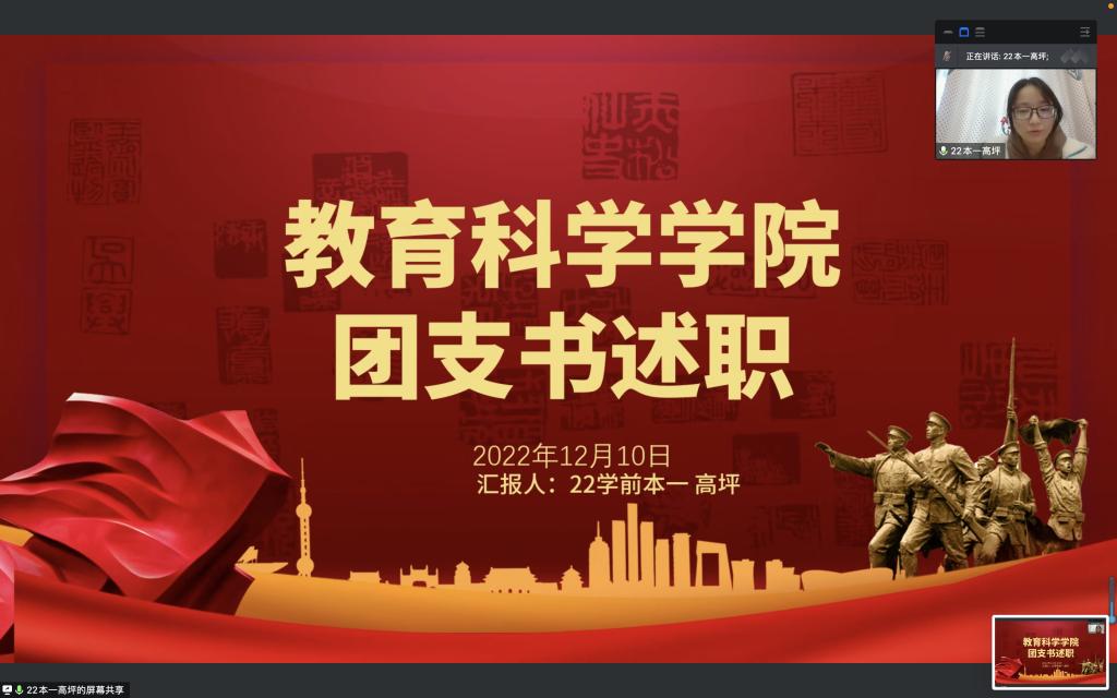 时间:2022-12-11 17:09:31 来源: 作者: 阅读: 次12月10日,澳门正规电子游戏平台线上召开2022年度基层团支部书记述职会议,澳门正规电子游戏平台分团委书记牛洁楠,各基层团支部书记以及各班团员代表参加此次会议。会议由2020级学前1班团支书董欣瑶主持。