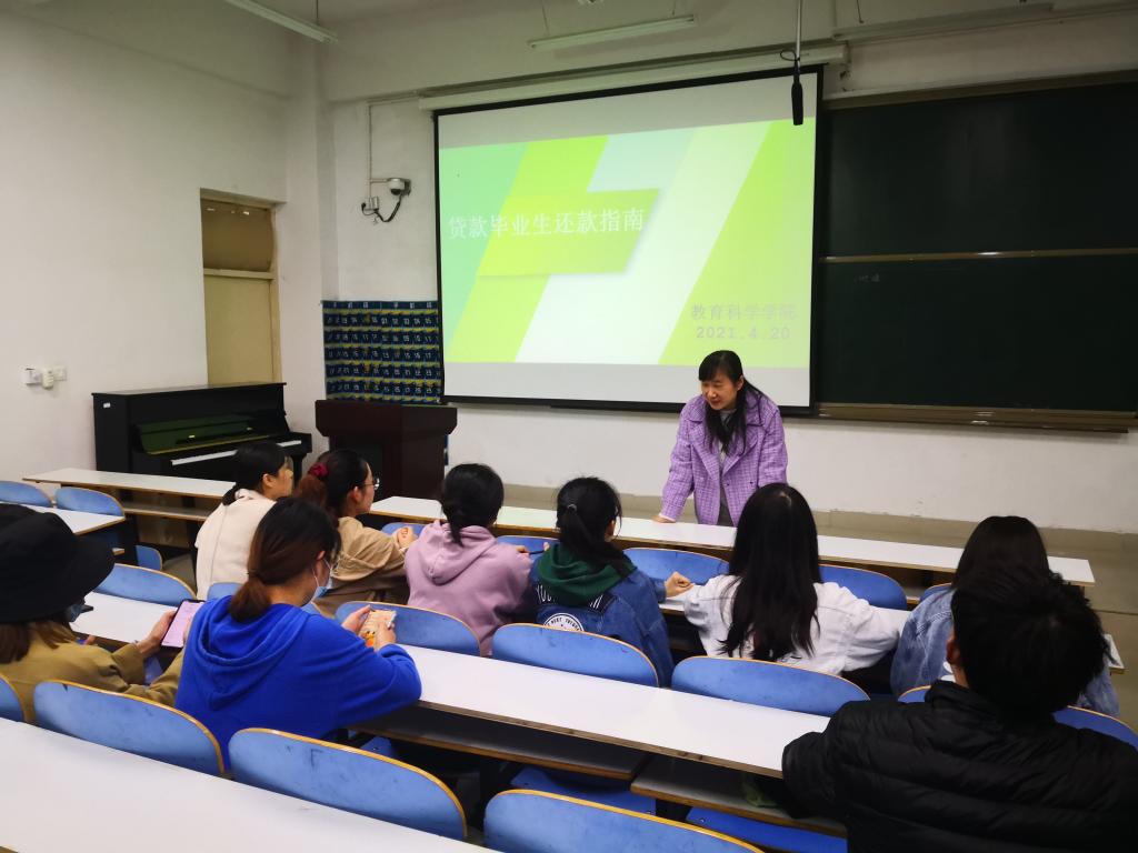 时间:2021-04-20 19:26:56 来源: 作者: 阅读: 次为了进一步增强电子游戏官网毕业生的诚信还款意识和社会责任感,4月20日下午,电子游戏官网资助专员朱方在教科203教室针对2021届国家助学贷款的毕业生进行了“贷款毕业生还款指南”专题宣讲会。