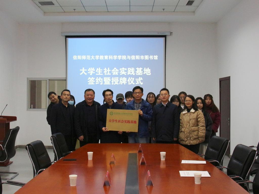 澳门正规电子游戏平台与信阳市图书馆联合举行共建大学生社会实践基地签约暨授牌仪式