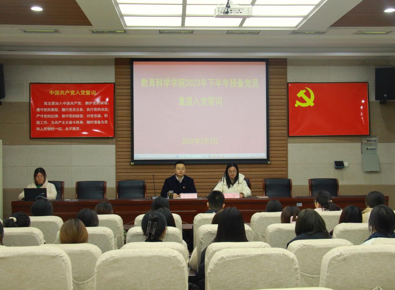 时间:2024-03-03 14:39:23 来源:教科院新闻宣传中心 作者:郭鑫瑶 吴皓 阅读: 次3月3日,澳门正规电子游戏平台于教科楼301会议室举行2023年下半年预备党员重温入党誓词大会。澳门正规电子游戏平台党委副书记董银银、专职组织员田园、全体预备党员参与此次大会。