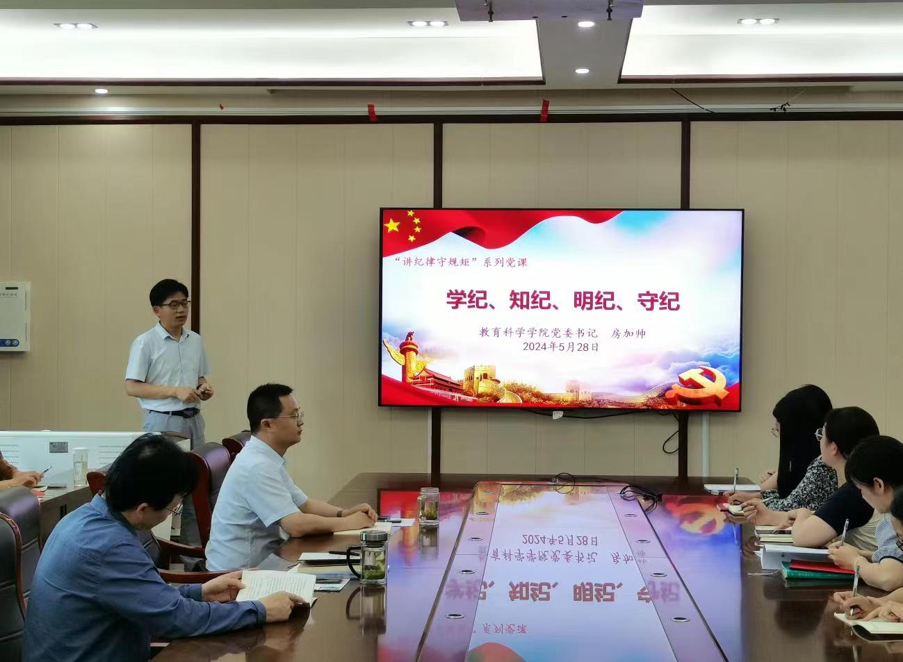 澳门正规电子游戏平台党委书记房加帅以《学纪、知纪、明纪、守纪》为主题,围绕其内涵实质与逻辑关系,引导党员、干部把思想和行动统一到党中央决策部署上来,进一步强化纪律意识、加强自我约束、提高免疫能力,增强政治定力、纪律定力、道德定力、抵腐定力,始终做到忠诚干净担当。