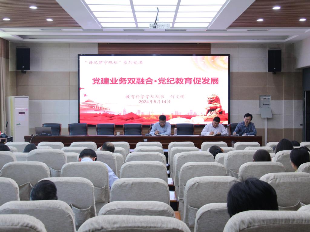 澳门正规电子游戏平台院长何安明以《党建业务双融合·党纪教育促发展》为题,讲授专题党课。他提出,党的纪律建设是确保党的事业长久发展的根本保证,要将党建贯穿于学科专业发展与师资队伍发展,应注重将党纪学习教育与师德师风建设有机结合起来,以党的科学理论武装青年,努力为师生创造良好的科研氛围和发展条件,引导青年加强科学研究,确保教学不落后,实现教学与科研双向促进。