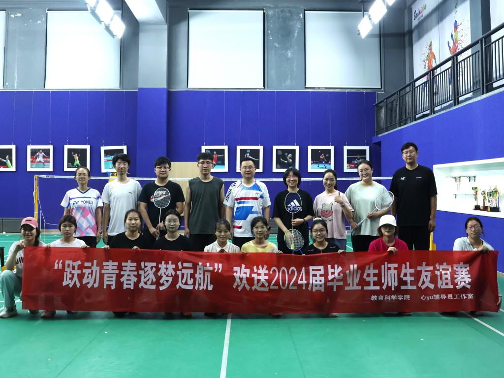 以体强心,为青春护航。5月29日-30日,举办“跃动青春 逐梦远航”欢送2024届毕业生乒乓球、羽毛球师生友谊赛。赛场上,师生们你争我夺,展开了一场场激烈较量;赛场下,师生们欢声笑语,诉说着一件件美好往事,进一步加深了师生情谊,为即将离校的毕业生留下了一段特殊的校园回忆。