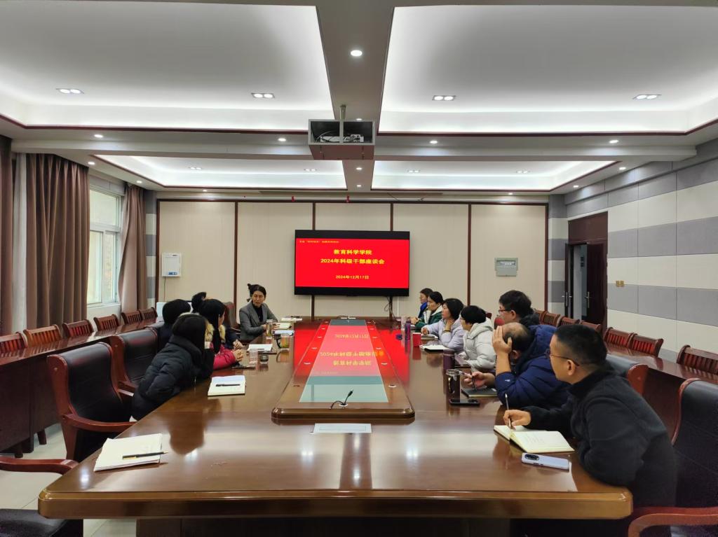 时间:2024-12-18 13:33:48 来源: 作者:杨艺卓 阅读: 次为进一步推进河南省“标杆院系”建设,充分发挥科级干部在教育博士授权点建设和学院事业发展中的作用,12月17日下午,电子游戏官网于教科楼402会议室召开科级干部座谈会。会议由院党委书记房加帅主持,副院长孙天义及全体科级干部参加座谈。