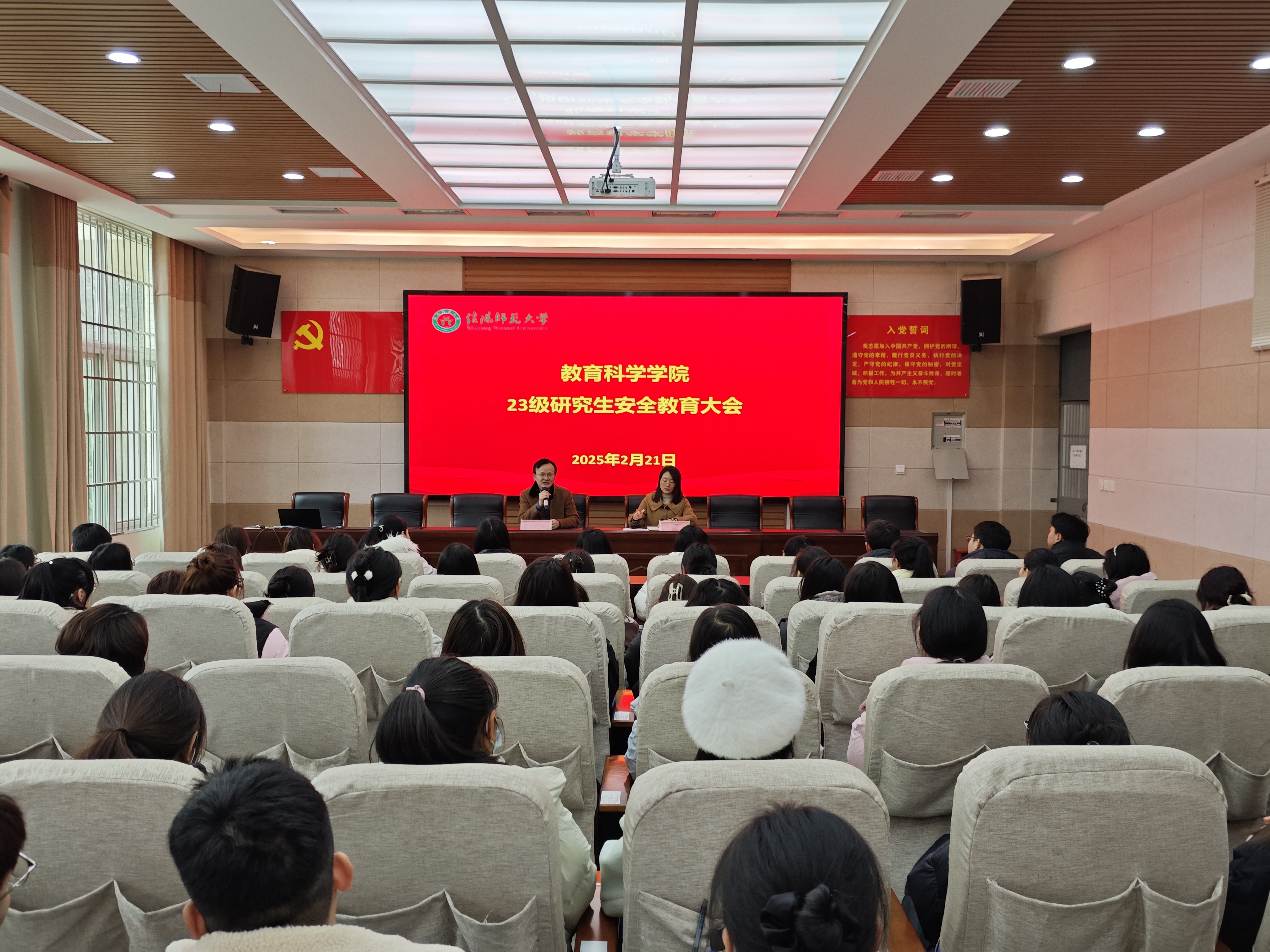 时间:2025-02-24 17:59:51 来源: 作者: 阅读: 次为切实加强研究生安全教育工作,提升学生安全防范意识,2月21日下午14时,澳门正规电子游戏平台在教科楼301报告厅组织召开2023级研究生安全教育专题大会。会议由研究生秘书段海岑主持,分管副院长孙天义及2023级研究生参加了会议。