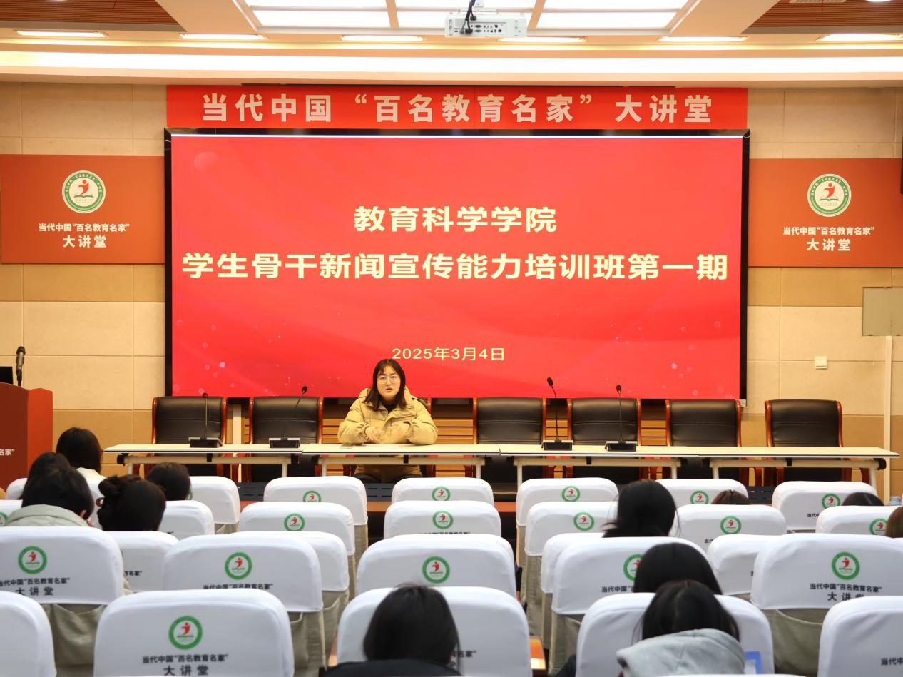 时间:2025-03-06 18:20:43 来源:教科院新闻宣传中心 作者:祐亚菊 蒋璐瑶 阅读: 次为提升学生骨干的新闻宣传能力,澳门正规电子游戏平台学生骨干新闻宣传能力培训班于3月4日在教科楼301开班。仪式由院团委书记杨艺卓主持,各班级组宣委员、学生会部门部长、社团负责人参加此次培训。