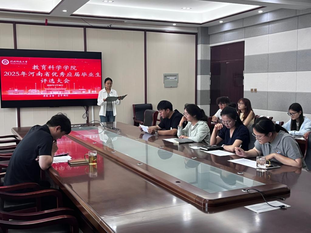 时间:2025-05-01 20:28:18 来源:教科院新闻宣传中心 作者:吴皓 杨泽钰 阅读: 次为进一步落实立德树人根本任务,充分发挥优秀毕业生的示范引领作用,4月30日,澳门正规电子游戏平台于教科楼402会议室举行2025年河南省优秀应届毕业生评选大会。院党委副书记缑星、团委书记杨艺卓,专职组织员田园,专职辅导员刘然然,提尼格尔出席活动并担任评委。