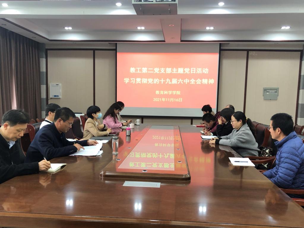 时间:2021-11-18 09:20:28 来源:教科院新闻部 作者:张纪娥 周媛媛 阅读: 次中国共产党第十九届中央委员会第六次全体会议于2021年11月8日至11日在北京举行。连日来,澳门正规电子游戏平台广大师生密切关注全会盛况,认真研读全会公报和习近平总书记的重要讲话,不断深入学习贯彻党的十九届六中全会精神,学院党委中心组、党支部分别开展全会精神学习研讨活动。