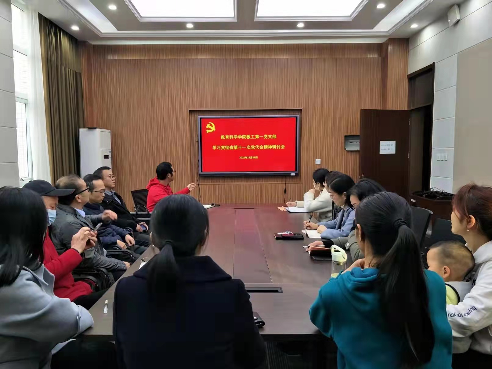 支部集中学。11月16日,教科院九个党支部分别召开了学习研讨会议。会上,各支部传达学习了省第十一次党代会上楼阳生书记所作的《高举伟大旗帜,牢记领袖嘱托,为确保高质量建设现代化河南、确保高水平实现现代化河南而努力奋斗》的报告,深刻领会会议精神,认真讨论,积极发言,并为河南省过去五年取得的重大成就而振奋,为现代化河南建设的前景充满希望。大家纷纷表示要切实把思想和行动统一到省第十一次党代会精神上来,勇于担当、不负使命,奋力开拓学校事业发展的新局面。