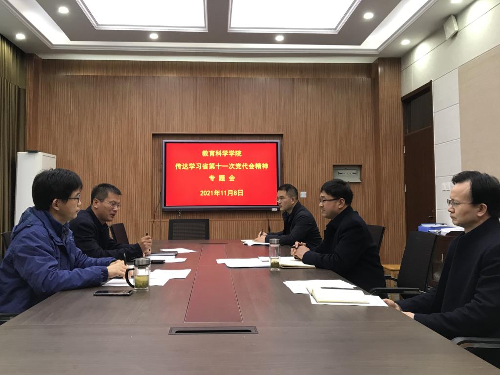 班子带头学。11月15日,学院党委中心组召开贯彻落实省委第十一次党代会精神的研讨会,会议传达省十一次党代会精神,与会党员干部结合自身工作谈体会、抒情怀,纷纷表达心中感想。党委书记房加帅提出,要把会议精神化为行动、做实做细学校各项工作,狠抓教育教学管理,进一步打造教科院发展新局面,为学院发展开创新篇章贡献力量。