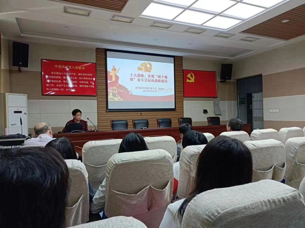 时间:2022-05-18 12:39:36 来源:教科院新闻部 作者: 阅读: 次为深入开展“能力作风建设年”活动,5月17日下午,澳门正规电子游戏平台在教科楼301会议室开展“十大战略”专题党课学习活动,教科院党委书记房加帅作了《十大战略:实现“两个确保”奋斗目标的战略路径》的辅导报告。会议采用线上线下相结合的方式,教科院全体党员参加。