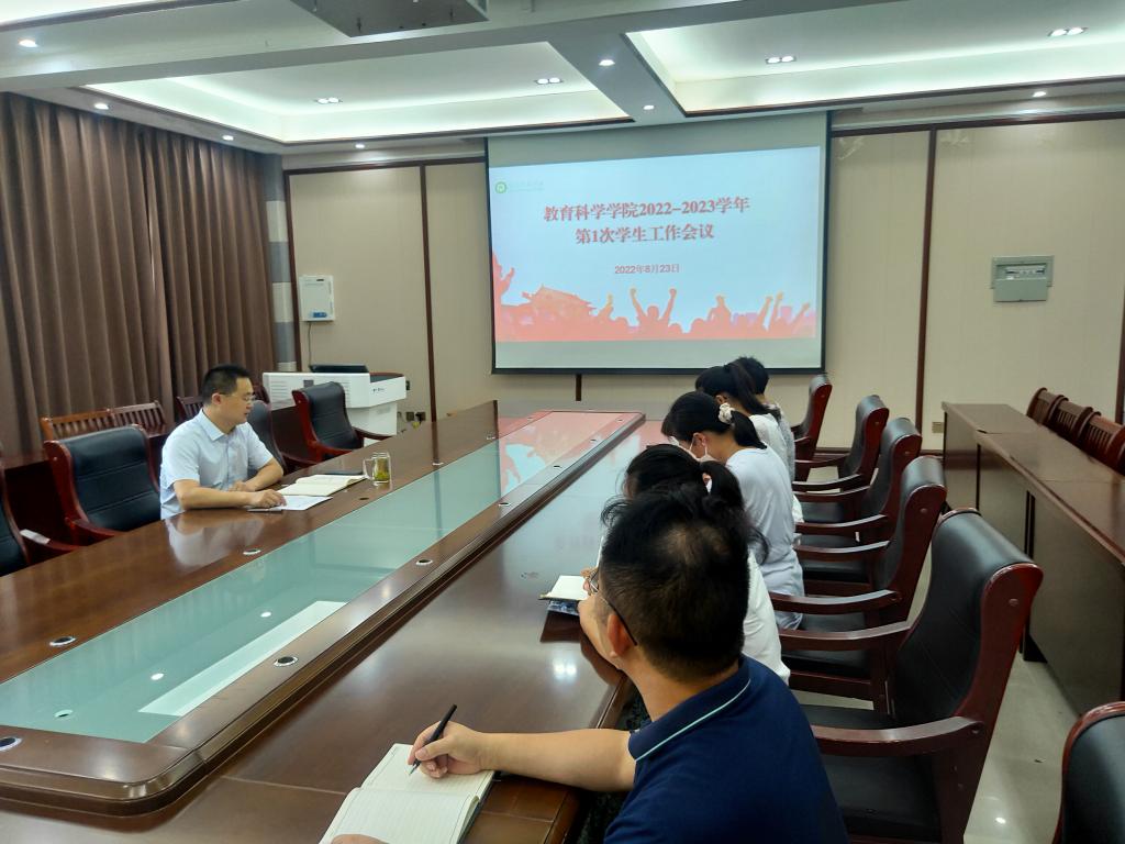时间:2022-08-23 18:57:33 来源: 作者:牛洁楠 阅读: 次8月23日上午,澳门正规电子游戏平台2022-2023学年第一次学生工作会议在教科402召开,院党委副书记董银银、全体辅导员参加会议,会议由董银银主持。