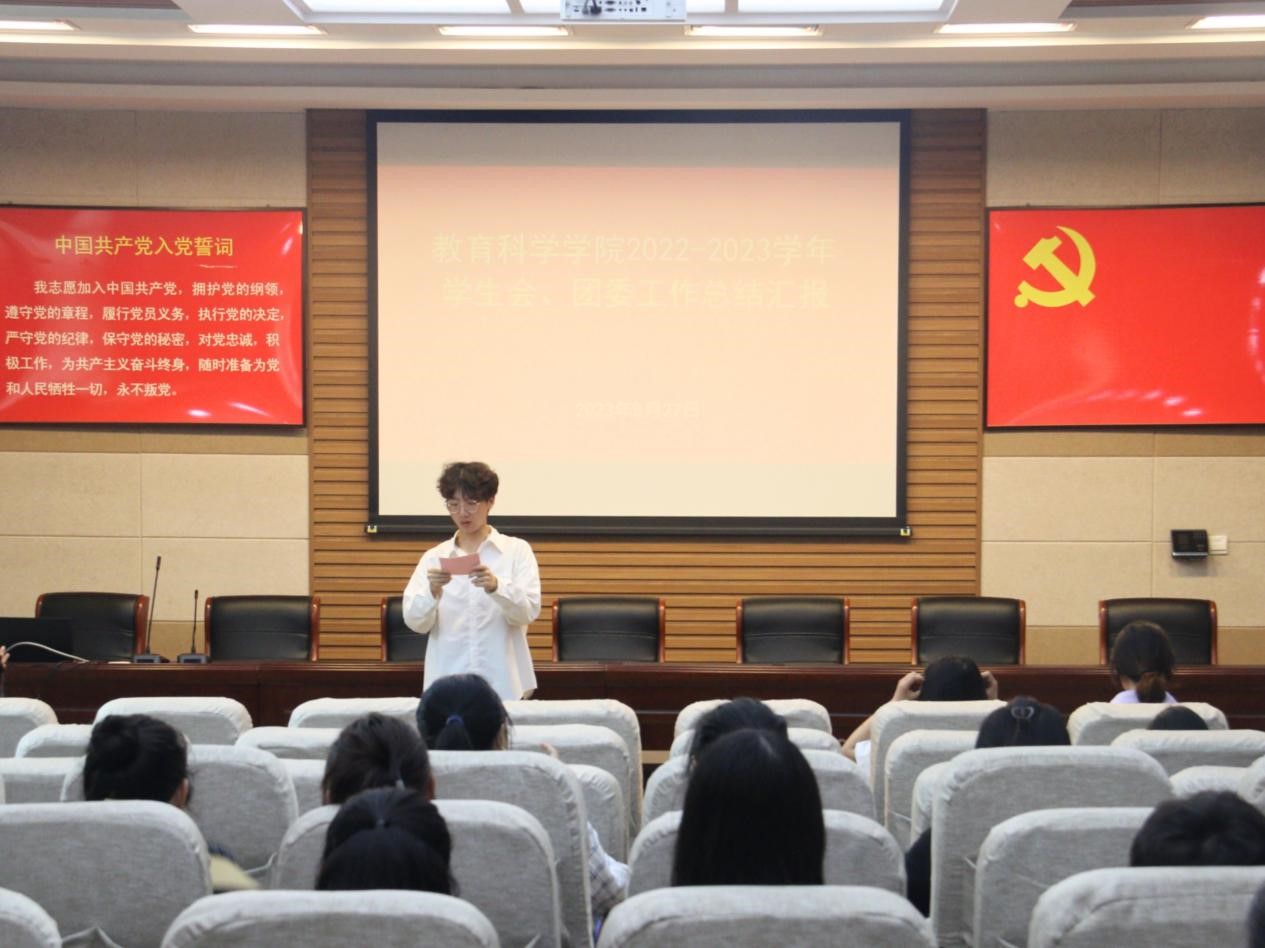 时间:2023-05-27 23:19:42 来源:教科院新闻宣传中心 作者:朱亚彤 荆媛媛 阅读: 次5月27日,澳门正规电子游戏平台在教科楼301会议室召开2022-2023学年学生会、团委工作总结汇报会议。分团委书记牛洁楠,专职辅导员杨艺卓、提尼格尔,团委、学生会及社团主要学生干部参加本次会议。会议由综合联络部干事和益倍主持。