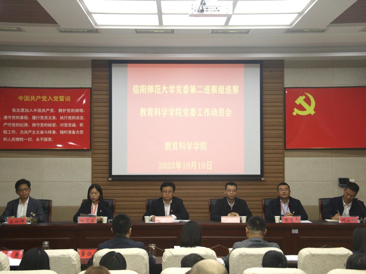 时间:2023-10-10 20:08:47 来源: 作者: 阅读: 次根据学校党委统一部署,10月10日,校党委第二巡察组巡察澳门正规电子游戏平台党委工作动员会在教科楼301报告厅召开。校纪委书记、监察专员、党委巡察工作领导小组常务副组长李荣胜出席会议并作动员讲话。校党委第二巡察组组长刘党英通报了巡察工作的主要任务、总体安排等;学院党委书记房加帅作表态发言,何安明主持会议。党委巡察办主任王振海、第二巡察组全体成员、学院领导班子成员、全体教职工、离退休教职工代表和学生代表参加。