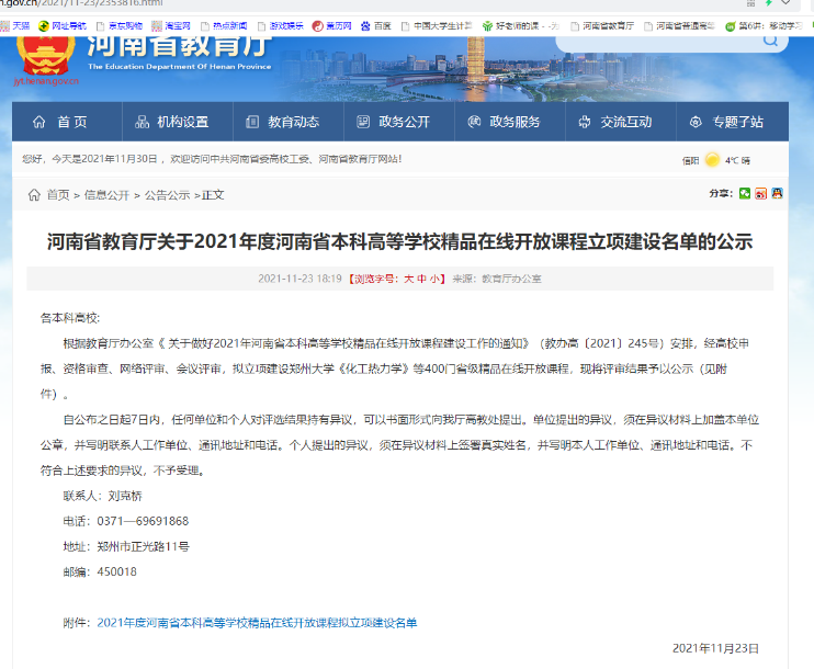 据悉,本次评审经历了高校申报、资格审查、网络评审、会议评审等环节,河南省教育厅最终确定拟立项400门省级在线开放课程。