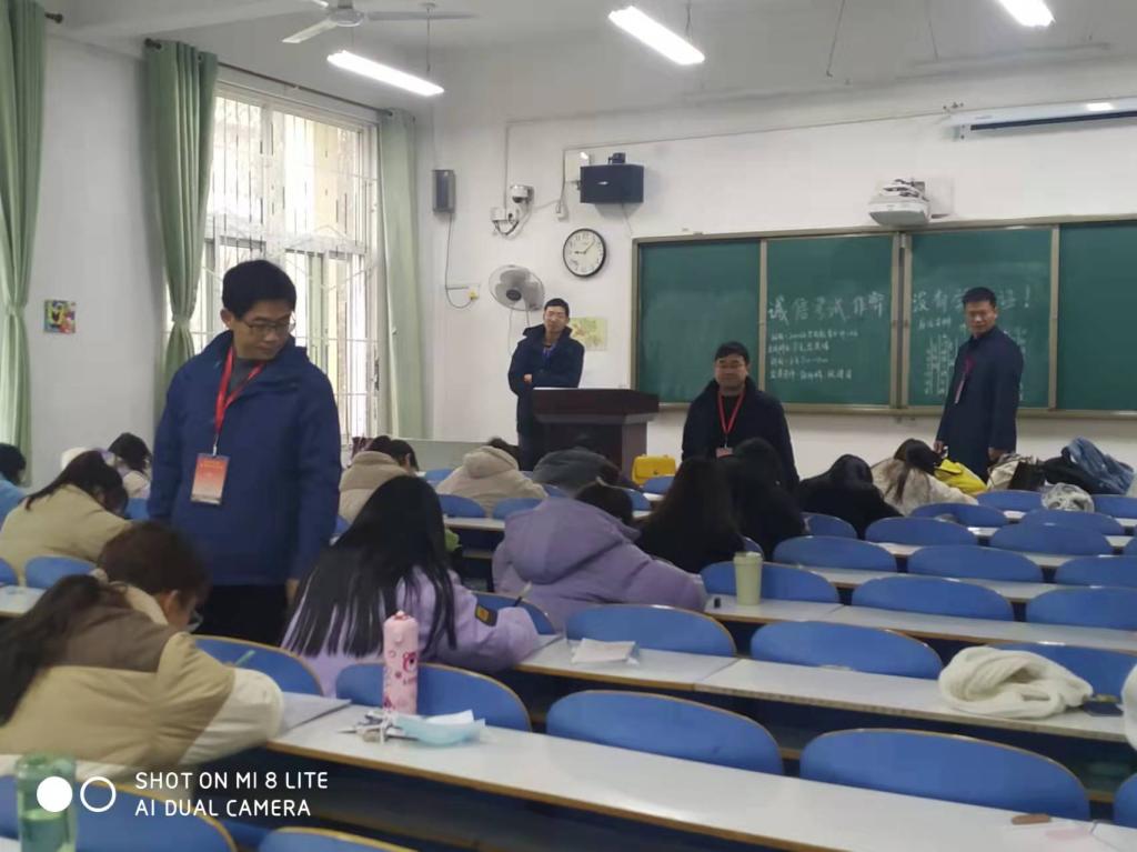 学院领导认真细致地巡查了各个考场,详细了解了考试组织、试卷试题结构、考生答题等情况,学院领导对监考教师认真监考、恪尽职守的态度、对各考场考生们认真端正的答题态度、良好规范的考场秩序表示肯定。何安明指出,期末考试是对一学期来老师所教、学生所学情况的检验,要狠抓考风考纪,监考人员在考试过程中要始终严格监督,防止作弊现象发生,只有树立诚实守信的良好考风,才能进一步树立良好学风、院风。