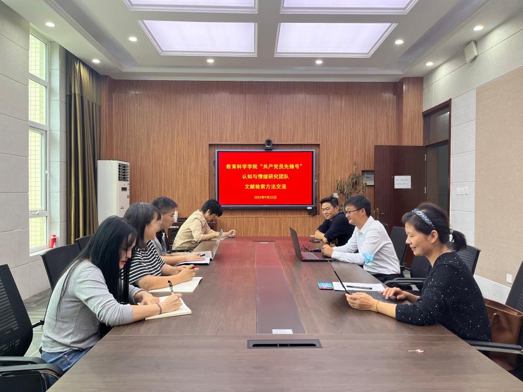 9月22日下午,澳门正规电子游戏平台教工第二党支部“共产党员先锋号”认知与情绪研究团队于教科楼303会议室开展交流活动,团队成员刘湍丽、邢敏、燕小辉、杨勇、杨军义、赵昕、董国珍参加会议,会议由团队带头人刘湍丽主持。会上围绕学术论文的文献检索方法进行真诚分享交流,通过学术研讨促进老师们科研方法的资源共享。