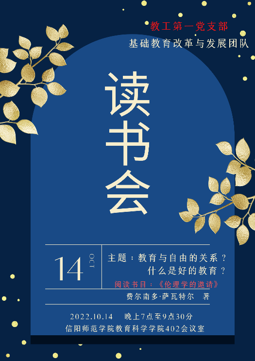 时间:2022-10-15 17:02:34 来源: 作者: 阅读: 次10月14日晚上,由澳门正规电子游戏平台教工第一党支部基础教育改革与发展团队发起的读书报告会在教科楼402会议室成功举办。本次读书会的主题为:教育与自由的关系、什么是好的教育。阅读书目为:《伦理学的邀请——做个好人》。读书会由教育学系主任杨建朝主持,澳门正规电子游戏平台副院长郭勇、专任教师邢思珍、张建国、李辉辉、朱欲晓、黄亚栋、张欢欢等以及三十余位同学参加,现场座无虚席,讨论热烈。