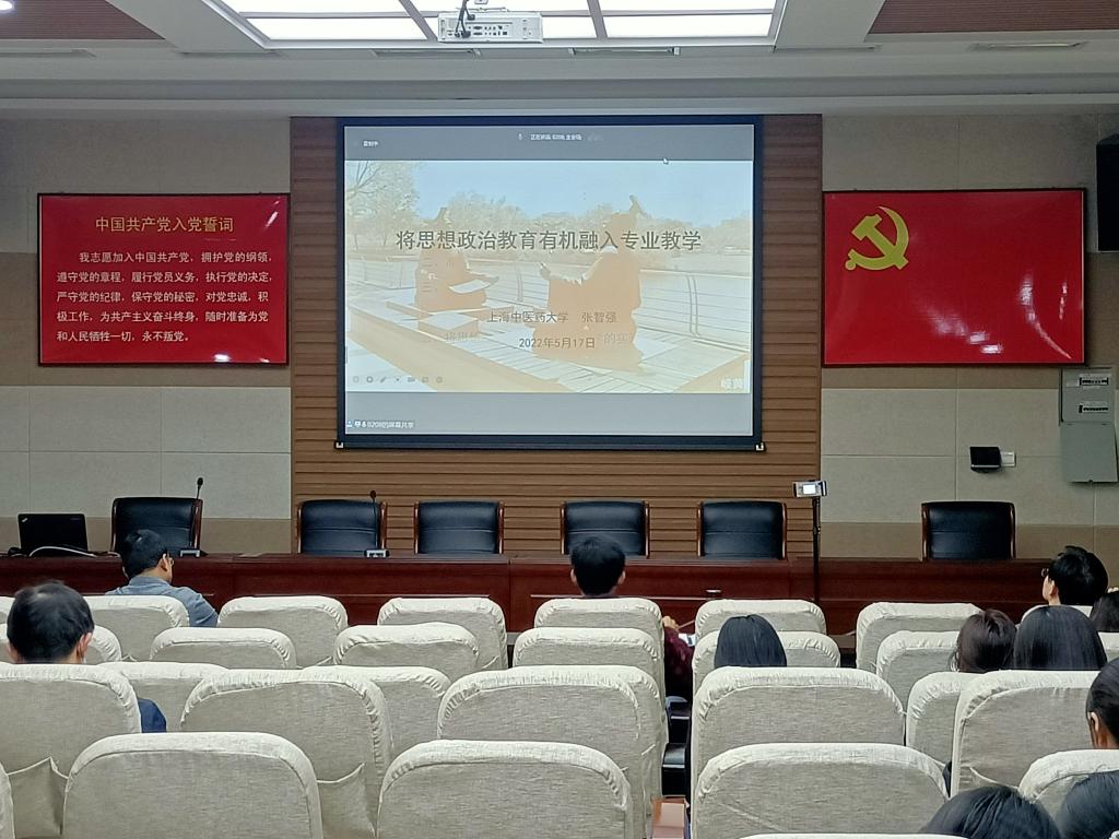 5月17日,澳门正规电子游戏平台在教科楼分会场(301会议室)组织参加“将思想政治教育有机融入专业教学”线上课程思政建设报告会,听取上海中医药大学张智强教授的报告。院长何安明在学校主会场参加会议。院党委书记房加帅,副院长郭勇、孙天义及全体专业教师在教科楼分会场参加会议。报告会由副校长余本海主持。